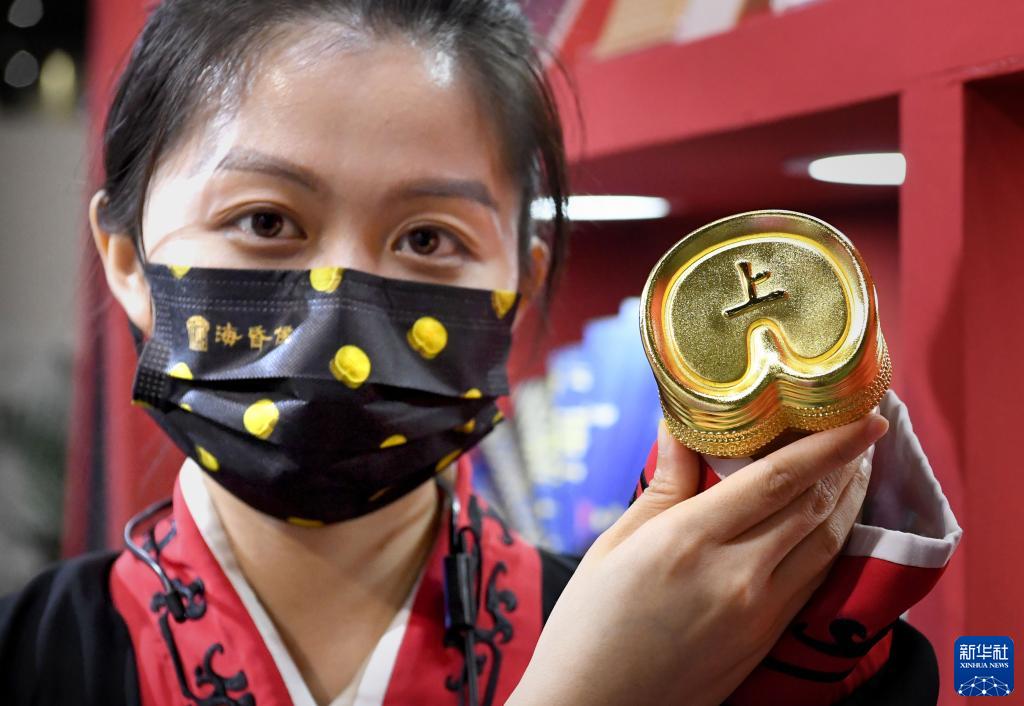 9月1日,工作人員在“博博會(huì )”上展示文創(chuàng )產(chǎn)品“馬蹄金”。