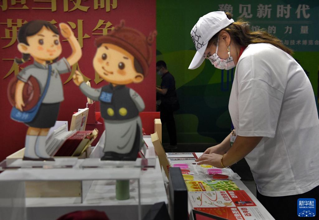 9月1日,參觀(guān)者在“博博會(huì )”中共一大紀念館展區觀(guān)看展品。
