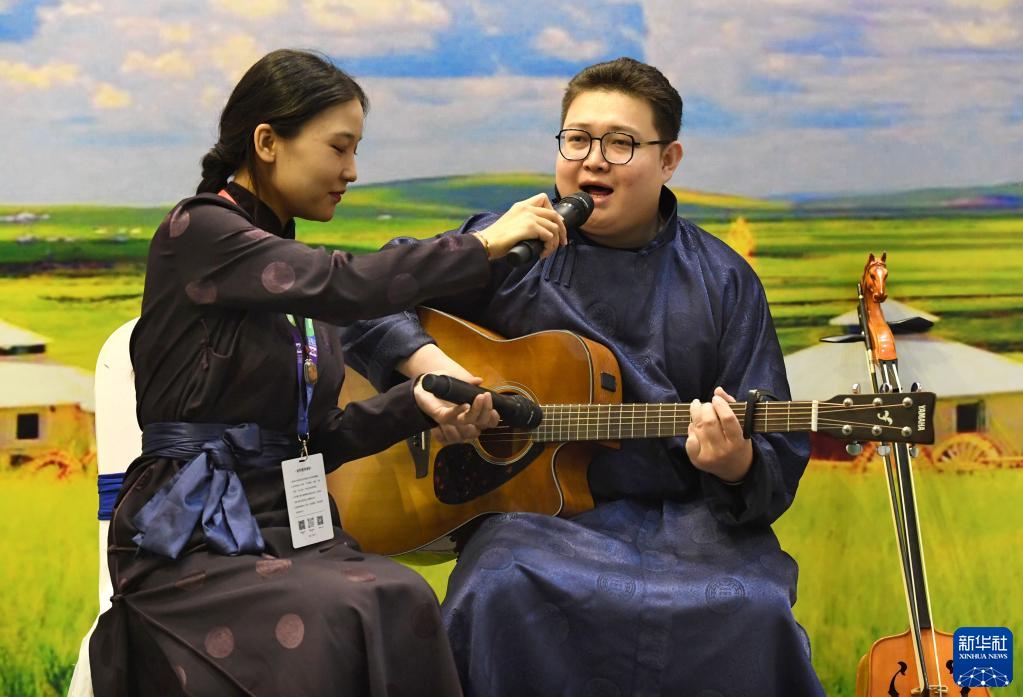 9月1日,工作人員在“博博會(huì )”斯琴塔娜藝術(shù)博物館展區表演。