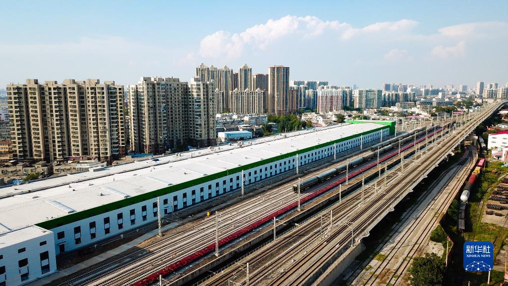 9月1日拍攝的濟(南)鄭(州)高鐵濟南站動(dòng)客車(chē)整備所(無(wú)人機照片)。新華社記者 郭緒雷 攝
