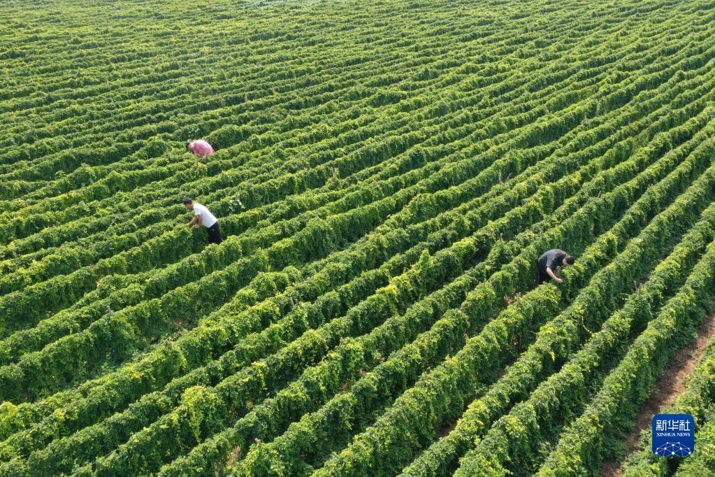 9月1日,河南省焦作市溫縣黃莊鎮米莊村村民在鐵棍山藥種植基地管理鐵棍山藥。