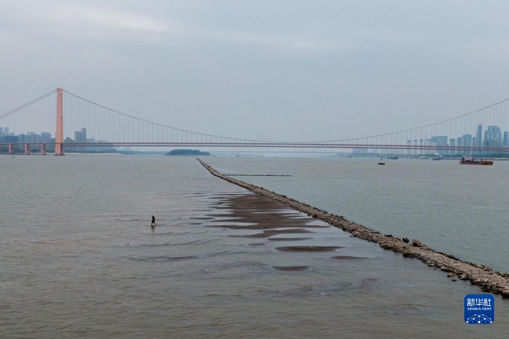 水位持續下降 長(cháng)江武漢段露出江心小道