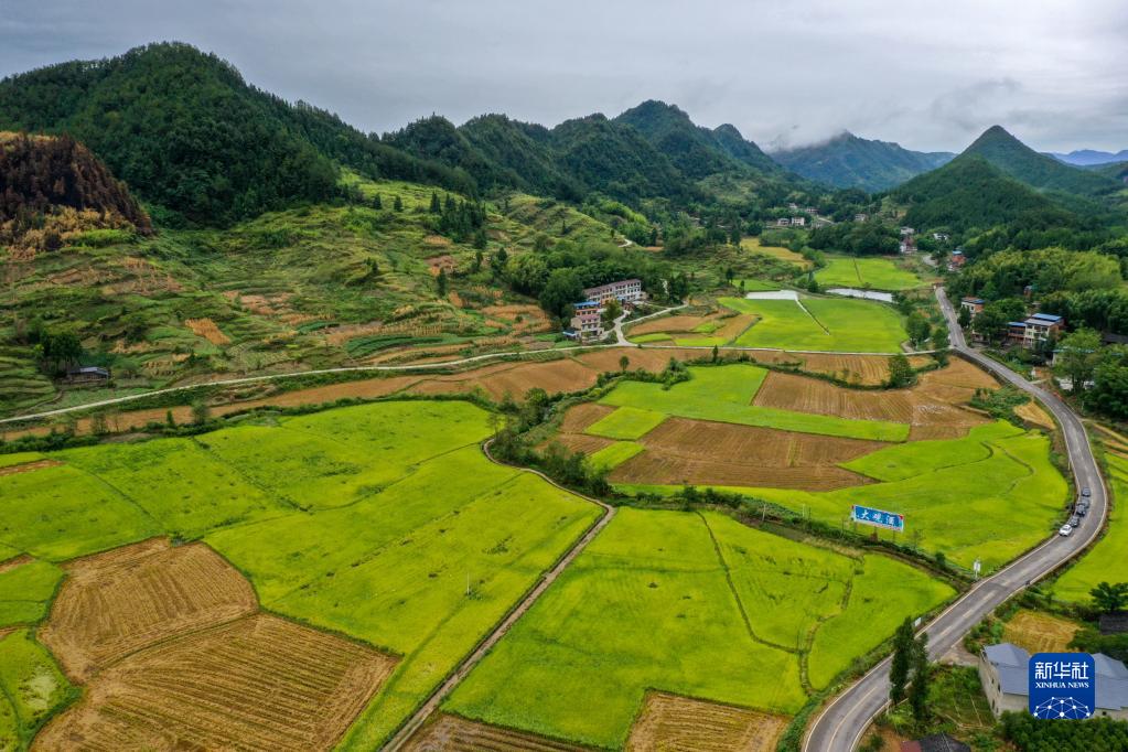 這是9月1日拍攝的位于重慶市梁平區蟠龍鎮的稻田(無(wú)人機照片)。