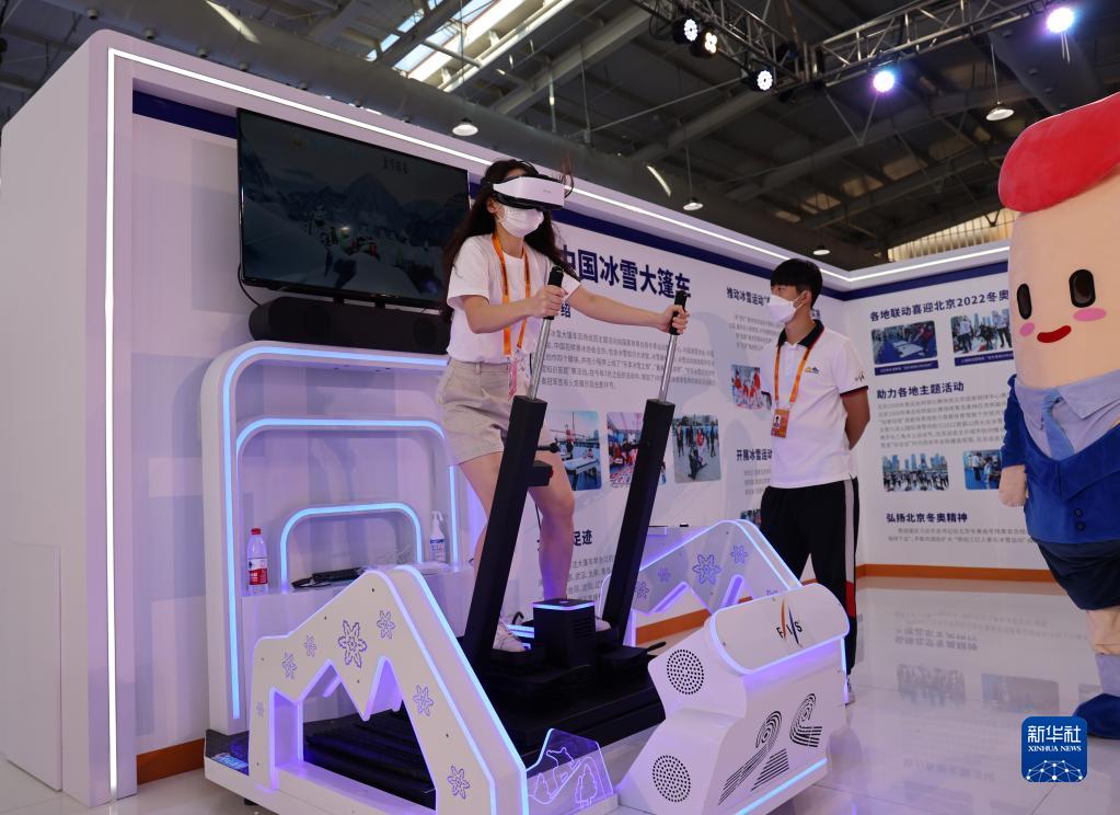 9月1日,一名女子在服貿會(huì )體育服務(wù)專(zhuān)題展區體驗虛擬滑雪設備。新華社記者 戚曉毅 攝