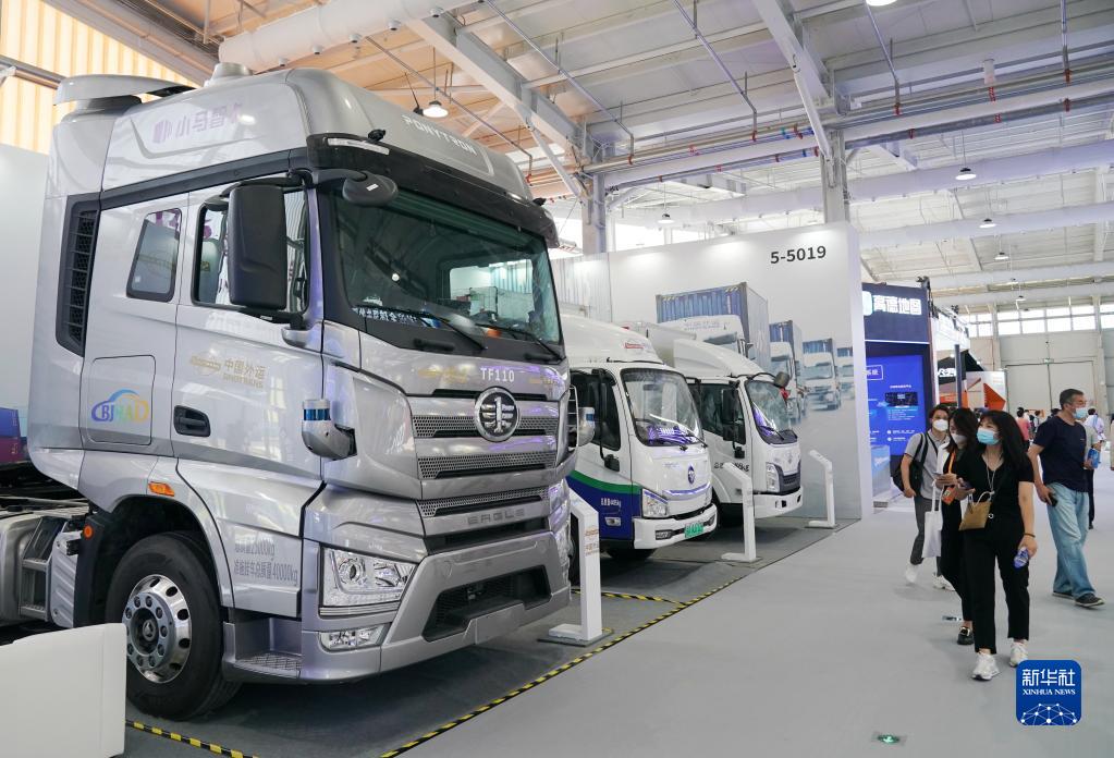 這是9月2日在供應鏈及商務(wù)服務(wù)專(zhuān)題展區拍攝的一款應用于干線(xiàn)物流領(lǐng)域的自動(dòng)駕駛卡車(chē)系統。