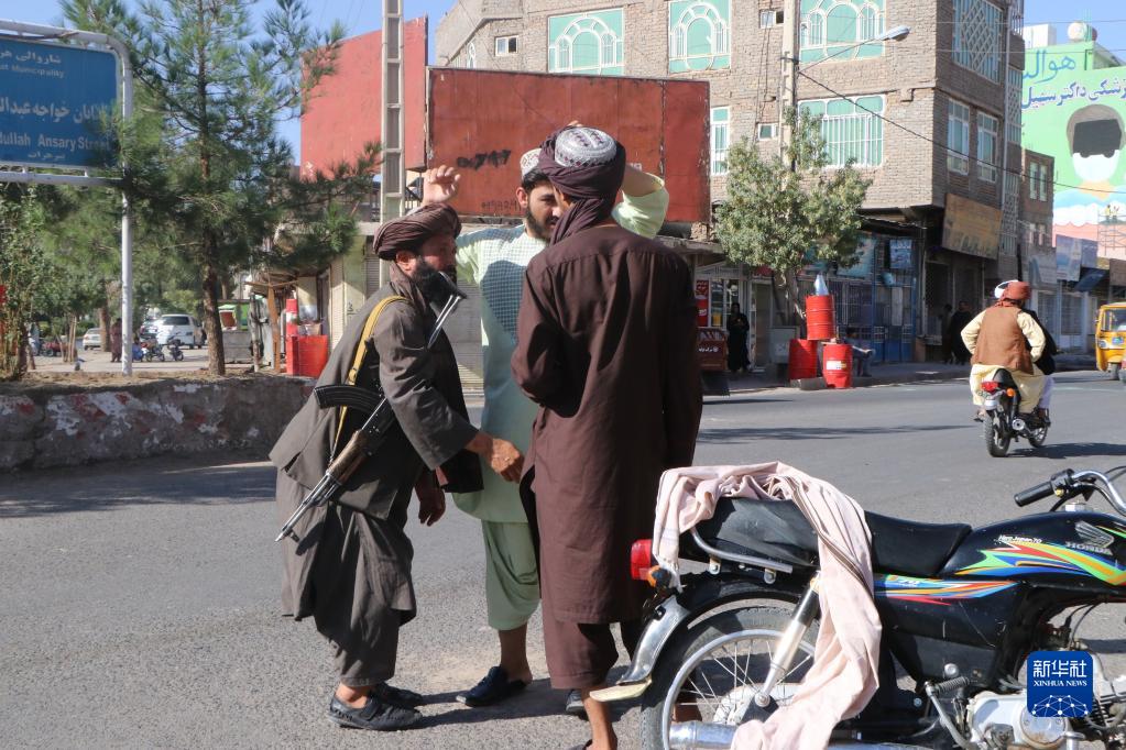 9月2日,在阿富汗赫拉特省發(fā)生爆炸的清真寺附近,一名男子接受檢查。