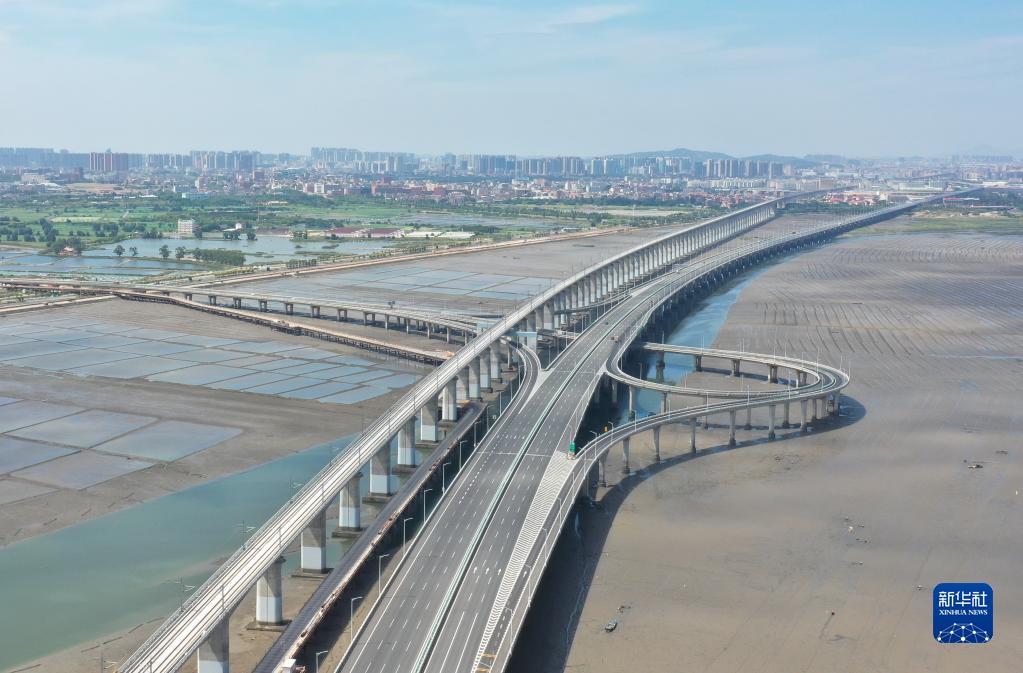 這是9月2日拍攝的新建福廈鐵路泉州灣跨海大橋(無(wú)人機照片)。