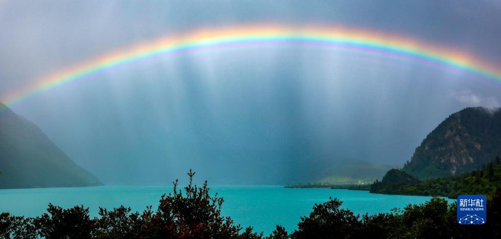 這是8月29日在西藏巴松湖拍攝到的彩虹。