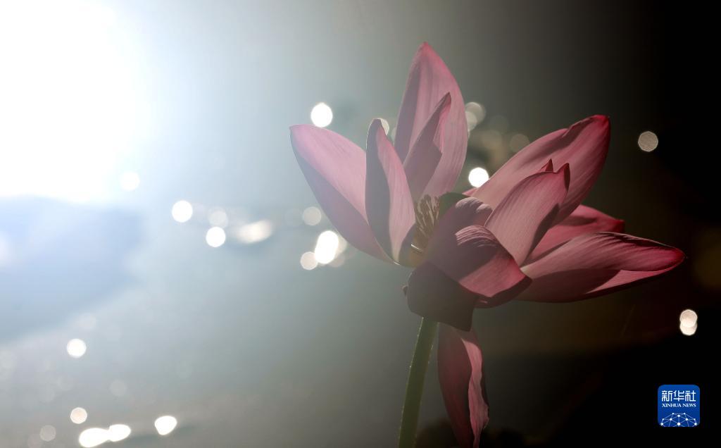 8月27日在河北省滄州市“百獅園”的荷塘里拍攝的荷花。