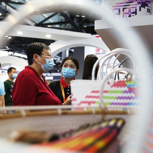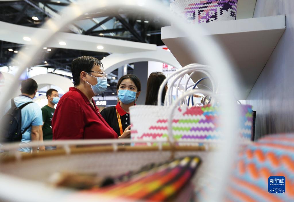 9月3日,參展商在服貿會(huì )國家會(huì )議中心展館國別展區馬來(lái)西亞沙撈越州展臺為參觀(guān)者介紹產(chǎn)品。