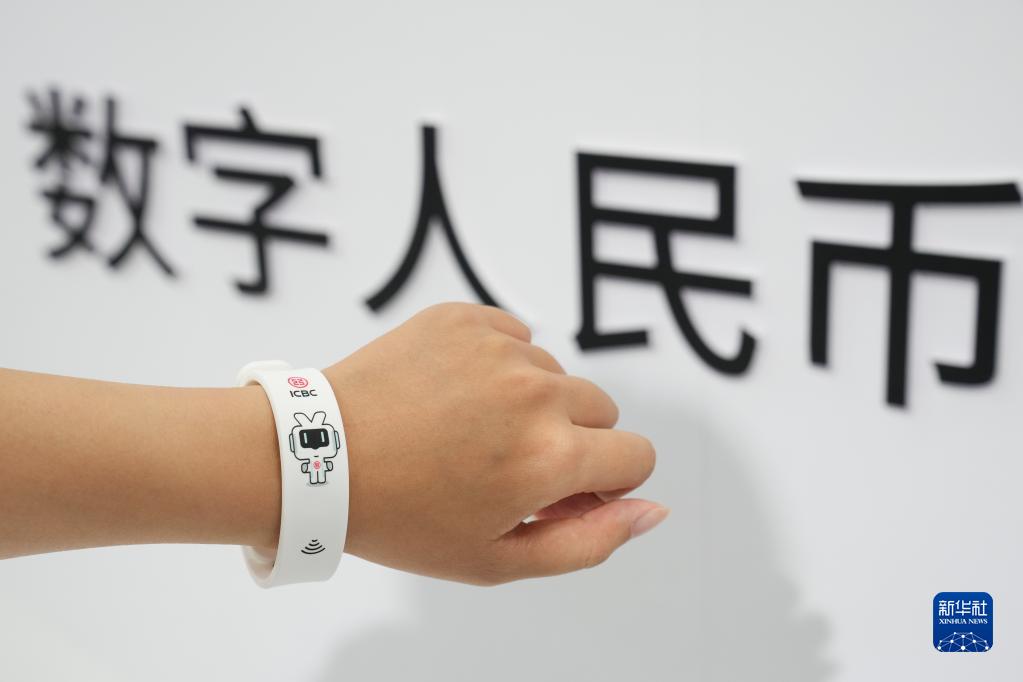 9月4日,在服貿會(huì )首鋼園區金融服務(wù)專(zhuān)題展上,一位中國工商銀行工作人員展示一款手環(huán)式數字人民幣硬件錢(qián)包。 新華社記者 鞠煥宗 攝