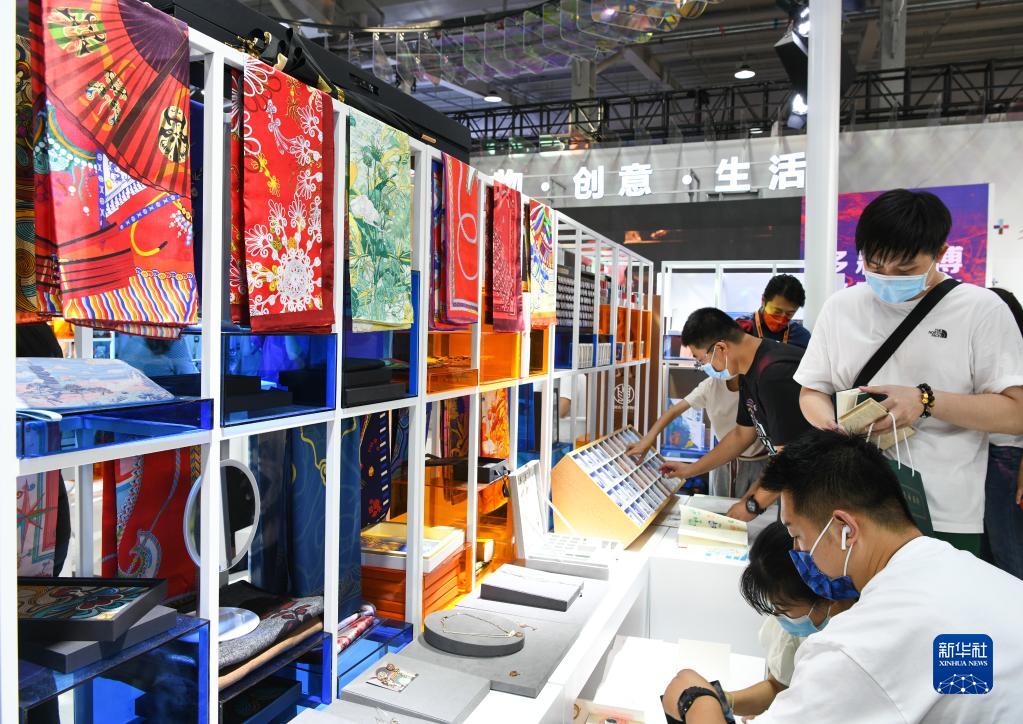 9月4日,觀(guān)眾在服貿會(huì )首鋼園區的文旅服務(wù)專(zhuān)題展區挑選商品。