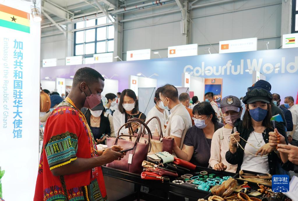 9月5日,參觀(guān)者在服貿會(huì )首鋼園區文旅服務(wù)專(zhuān)題展區加納展臺挑選商品。