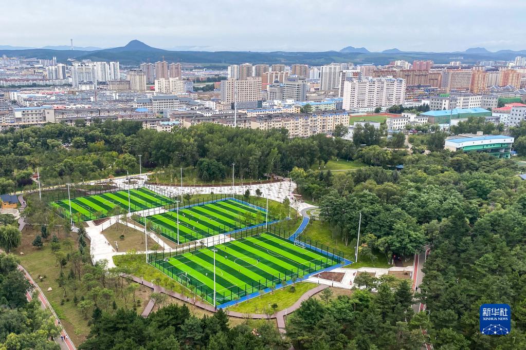 這是延邊朝鮮族自治州延吉市人民公園內的足球場(chǎng)(9月4日攝)。