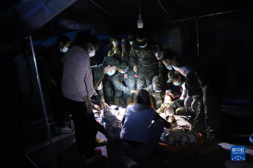 9月5日,武警四川總隊醫院醫療隊在甘孜州瀘定縣磨西鎮貢嘎山王廣場(chǎng)救治傷員。新華社發(fā)(李華時(shí) 攝)