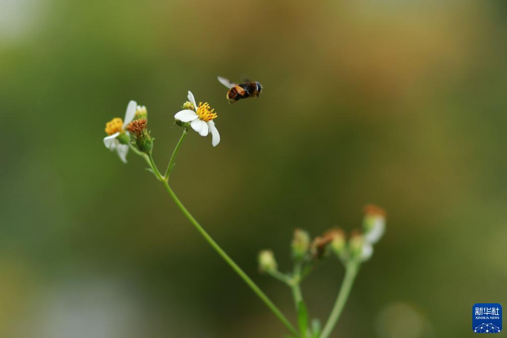 9月4日,在貴州省都勻市,一只昆蟲(chóng)在花間飛舞。