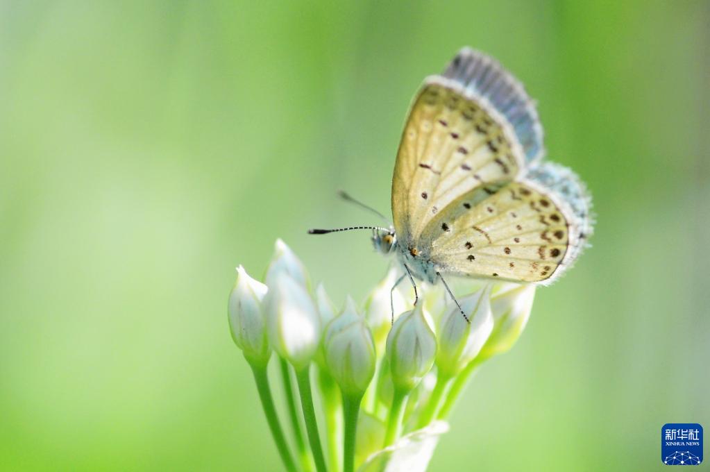 9月2日,在山東棗莊滕州市西崗鎮馬廟村,一只蝴蝶落在韭菜花上。