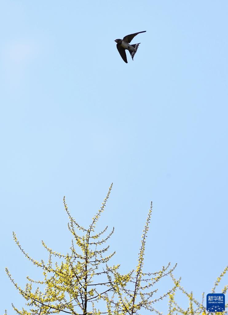 9月2日,在山東省滕州市西崗鎮一處公園里,燕子展翅飛翔。