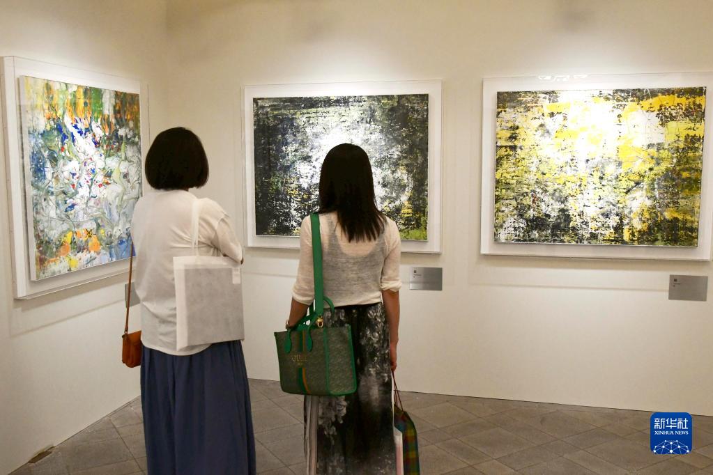 9月3日,觀(guān)眾在日本東京舉行的畫(huà)展上欣賞王傳峰的作品。