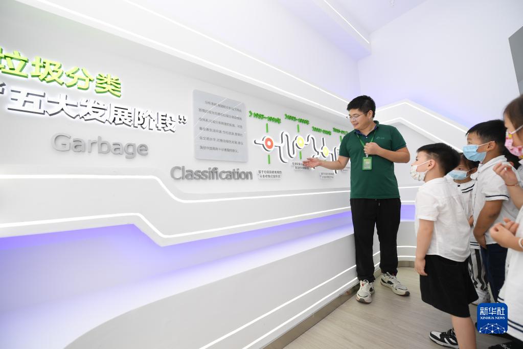 9月6日,在位于湖州吳興區愛(ài)山街道的垃圾分類(lèi)宣教館,講解員為孩子們講解垃圾分類(lèi)知識。