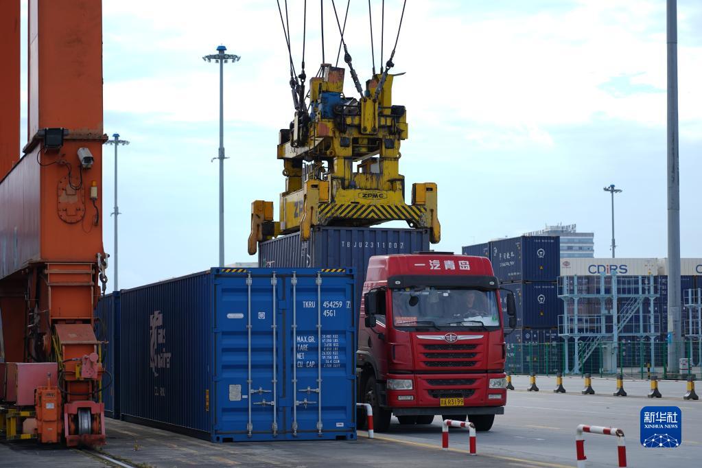 9月3日,貨車(chē)司機在成都鐵路集裝箱中心站內裝卸集裝箱。