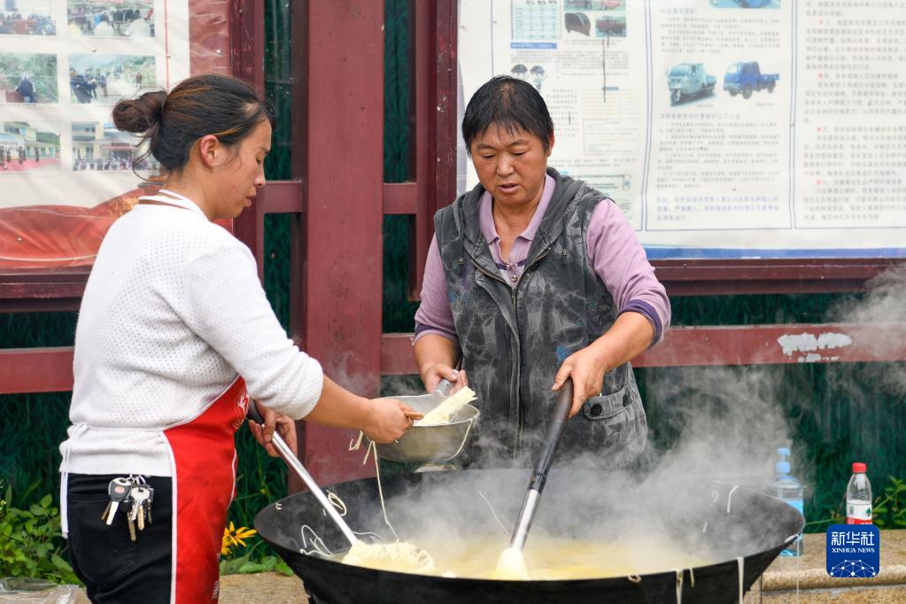 當日,在位于四川省雅安市石棉縣王崗坪鄉挖角村村委會(huì )的安置點(diǎn),村民在安置點(diǎn)內架起鍋灶,生火做飯,為安置點(diǎn)里的鄰里鄉親準備餐食。