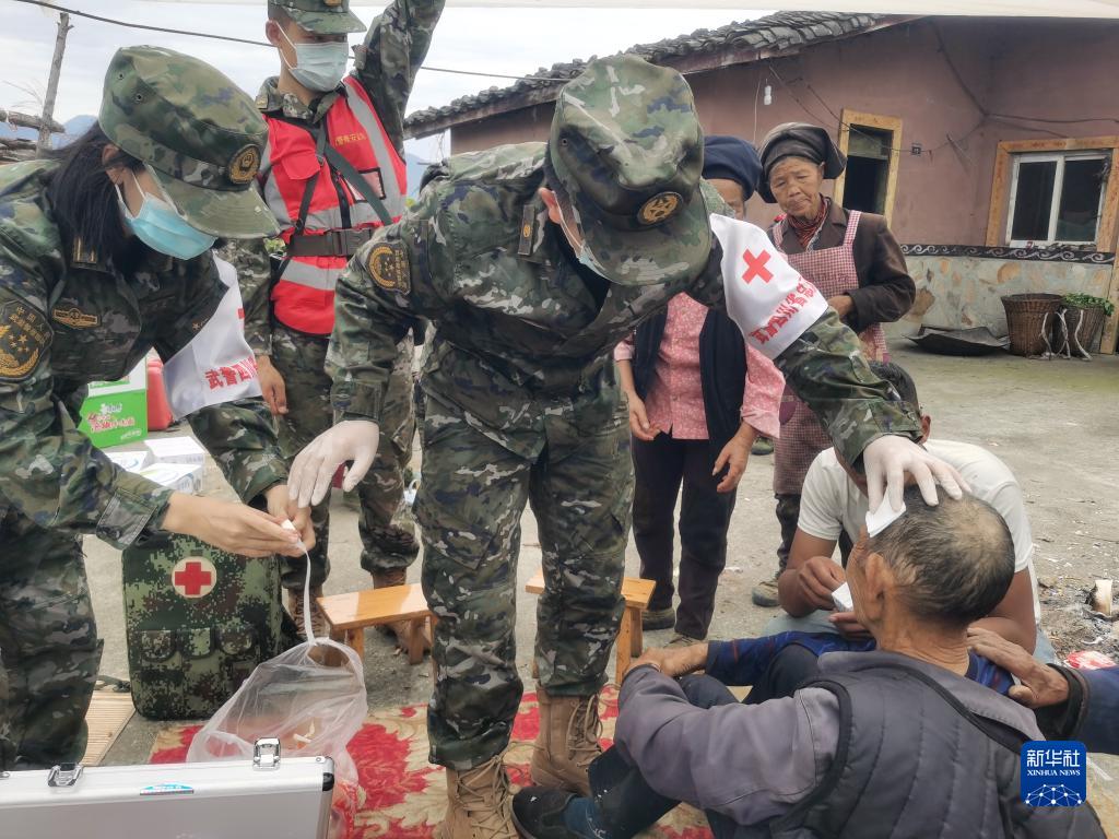 9月6日,武警四川總隊醫院醫療隊在瀘定縣磨西鎮救治傷員。新華社發(fā)(李華時(shí) 攝)