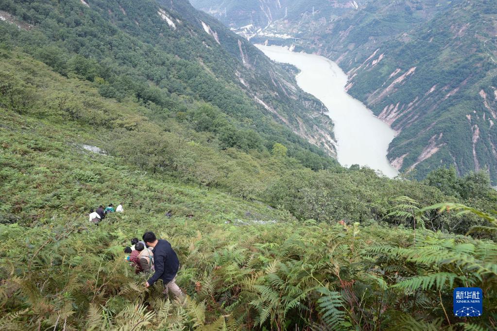 9月6日,瀘定縣得妥鎮灣東村村民攀爬高山向外疏散。