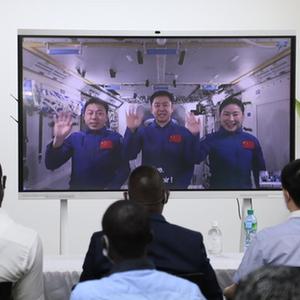 來(lái)自埃塞俄比亞、埃及等非洲8國的青少年6日通過(guò)網(wǎng)絡(luò )視頻與正在中國空間站執行任務(wù)的神舟十四號航天員進(jìn)行“天宮對話(huà)”活動(dòng),互動(dòng)場(chǎng)面氣氛熱烈,妙趣橫生。當天活動(dòng)的主會(huì )場(chǎng)設在位于埃塞俄比亞首都亞的斯亞貝巴的非洲聯(lián)盟(非盟)委員會(huì )總部,并在阿爾及利亞、埃及、埃塞俄比亞、納米比亞、尼日利亞、塞內加爾、索馬里和南非共8個(gè)國家設立分會(huì )場(chǎng),來(lái)自中非各界近千人出席。