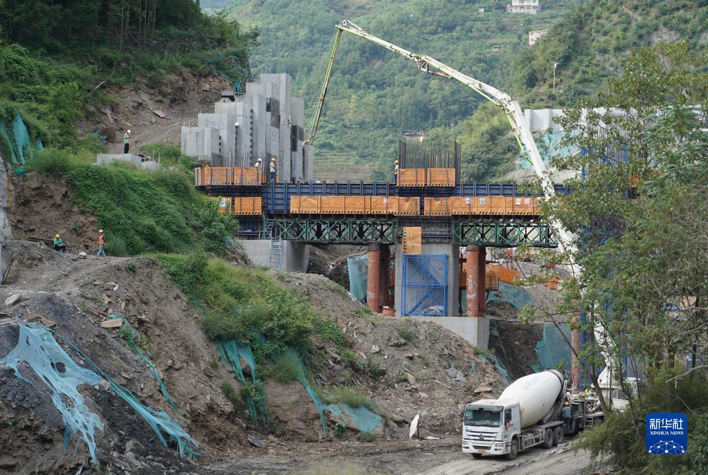 建設中的西康高鐵桐木車(chē)站特大橋(9月6日攝)。