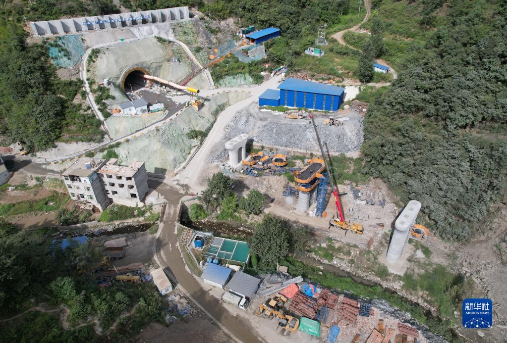 位于陜西旬陽(yáng)縣境內的一處西康高鐵建設現場(chǎng)(9月6日攝,無(wú)人機照片)。