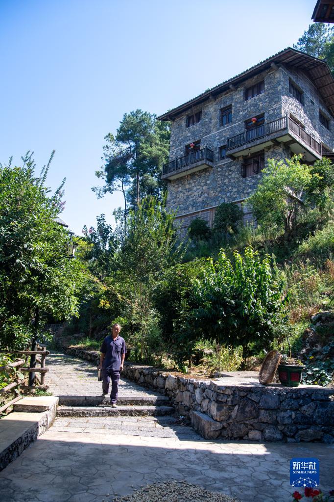 9月7日,村民走在重慶市酉陽(yáng)縣兩罾鄉內口村楠木灣美麗鄉村旅游區內。新華社記者 唐奕 攝