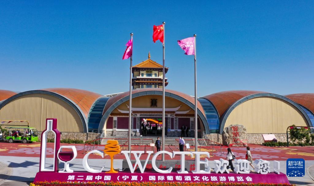 9月7日,第二屆中國(寧夏)國際葡萄酒文化旅游博覽會(huì )在寧夏銀川市閩寧鎮開(kāi)幕(無(wú)人機照片)。