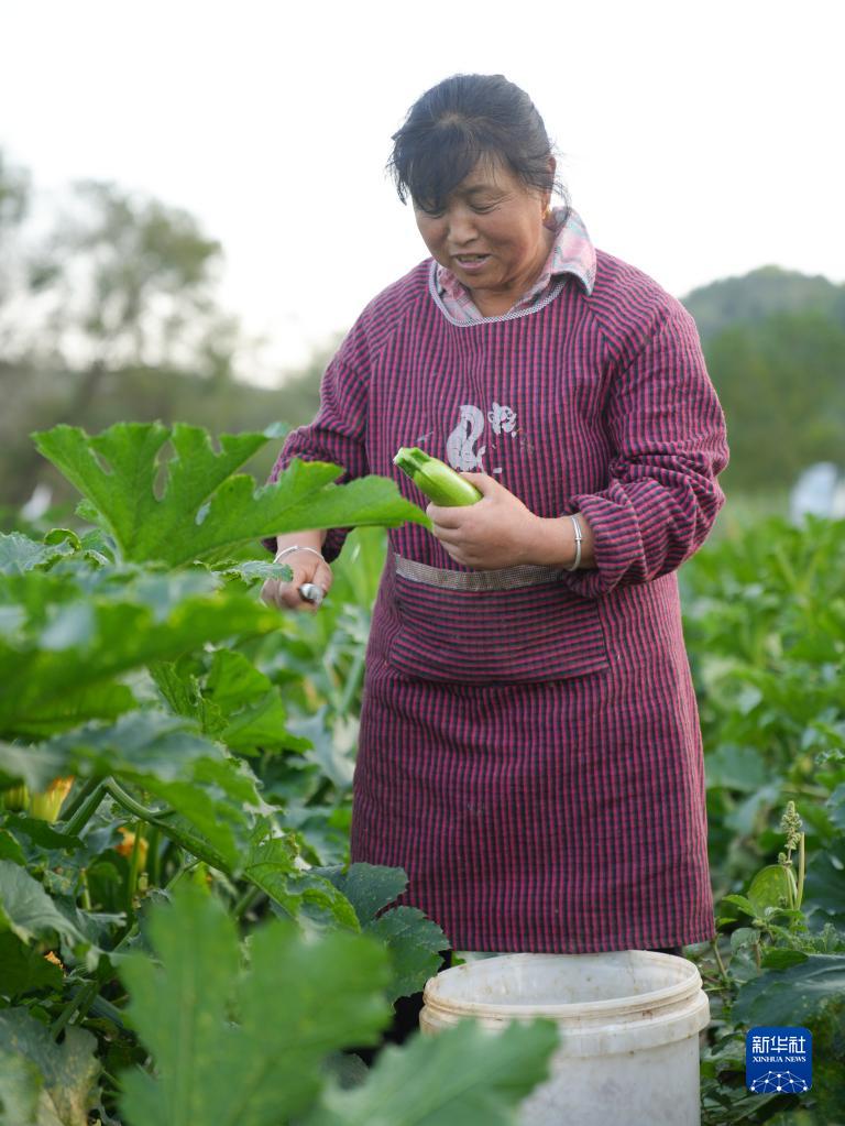9月5日,工作人員在位于麟游縣九成宮鎮西坊村的農業(yè)示范園采摘西葫蘆。