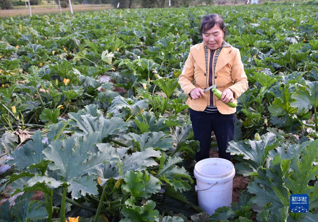 9月5日,工作人員在位于麟游縣九成宮鎮西坊村的農業(yè)示范園采摘西葫蘆。