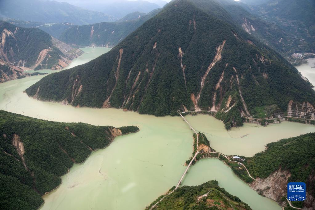 這是9月7日拍攝的雅安市石棉縣王崗坪彝族藏族鄉幸福村二組附近的照片,能看到山體多處滑坡(無(wú)人機照片)。