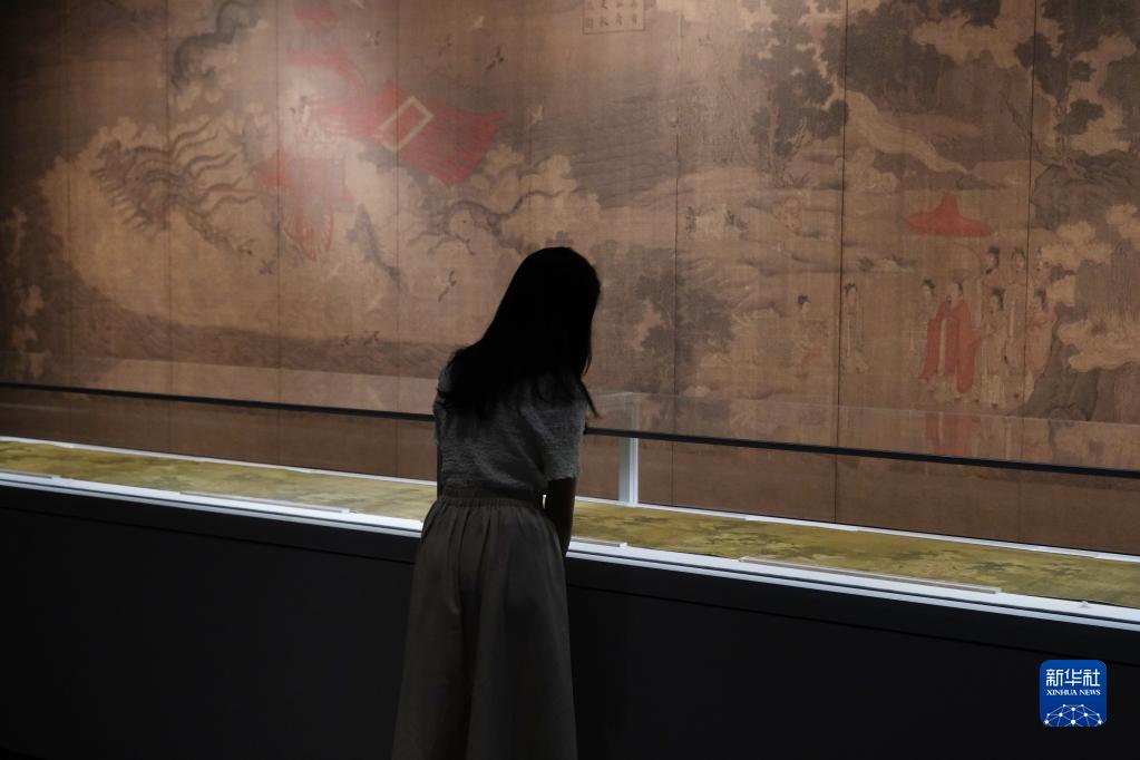 9月7日,在香港故宮文化博物館,觀(guān)眾在觀(guān)賞《洛神賦全圖》(南宋摹本)。新華社記者 王申 攝