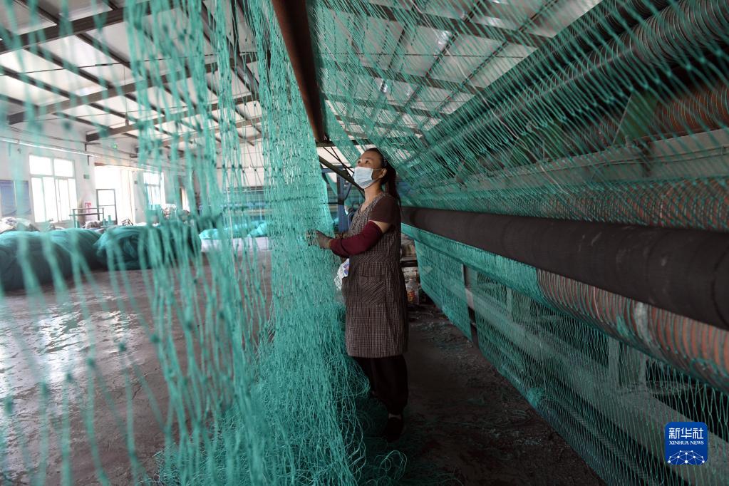 9月7日,無(wú)棣縣小泊頭鎮一漁網(wǎng)加工企業(yè)的技術(shù)員,在檢查加工好的漁網(wǎng)。