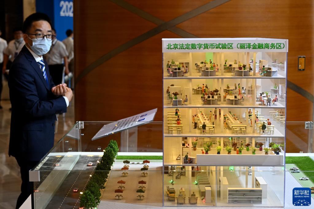 9月8日,在論壇設置的數字人民幣體驗區,一名與會(huì )者觀(guān)看麗澤數幣一卡通的應用場(chǎng)景模型。