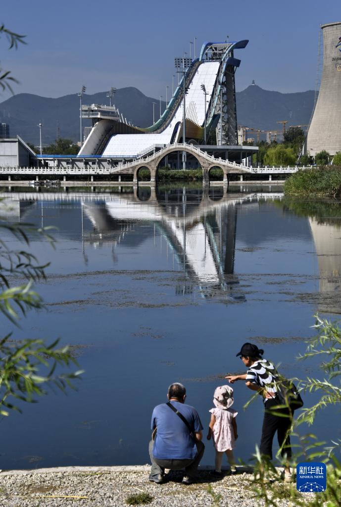9月8日,市民在首鋼老園區群明湖畔休閑。群明湖具備集雨節水功能,同時(shí)可供市民休閑。
