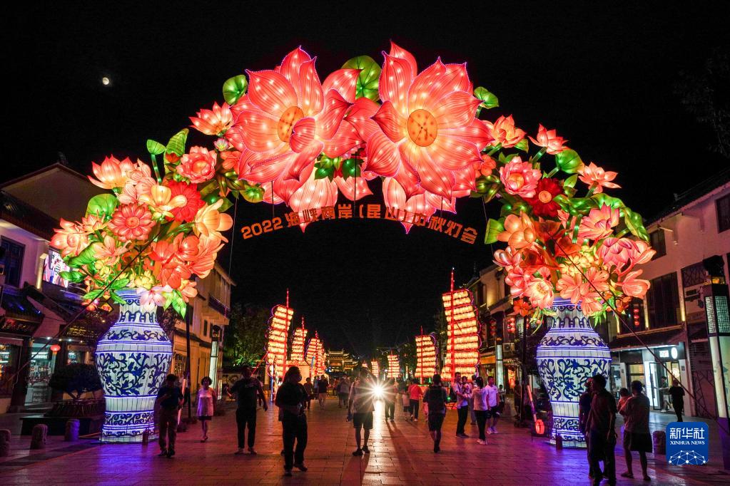 9月8日,2022海峽兩岸(昆山)中秋燈會(huì )在江蘇省昆山市周莊古鎮舉行亮燈儀式,本屆燈會(huì )以“花開(kāi)并蒂 燈映兩岸”為主題,即日起至10月7日在周莊、錦溪等四個(gè)燈區展出。新華社記者 楊磊 攝