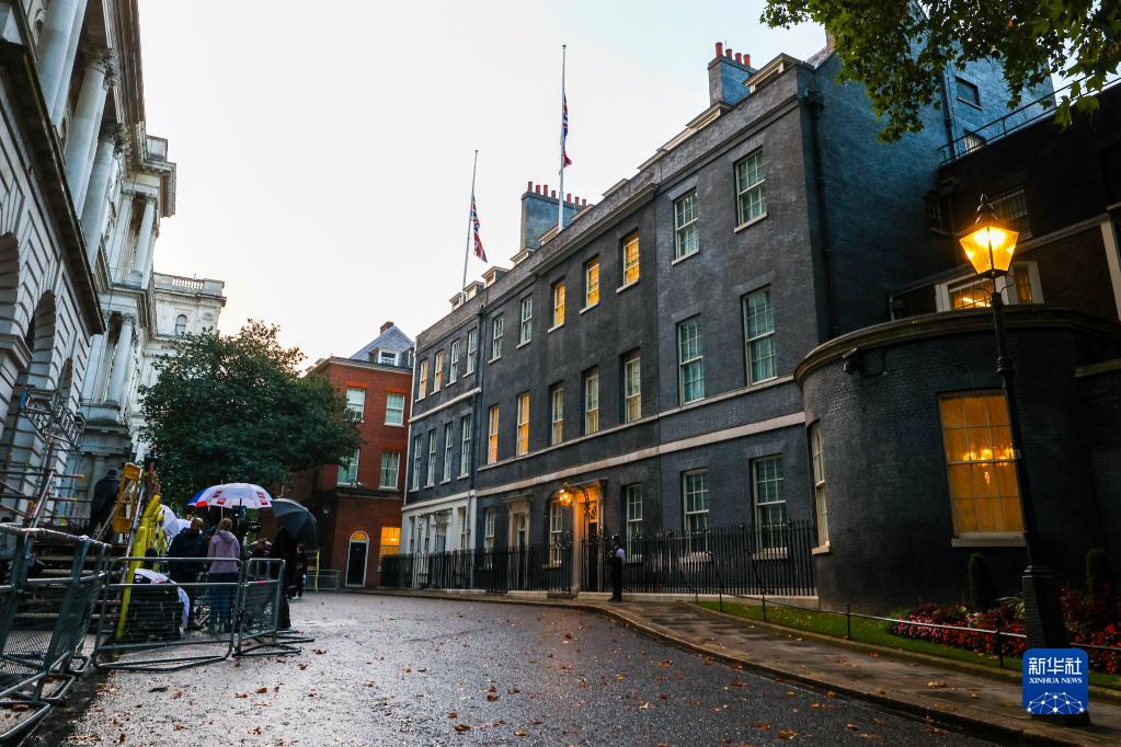 9月8日,英國倫敦唐寧街10號首相府降下半旗。