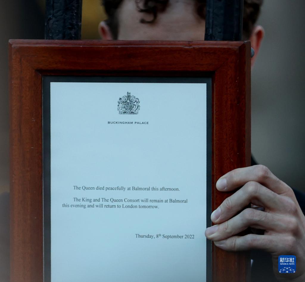 9月8日,在英國倫敦,工作人員將英國女王伊麗莎白二世去世的告示安放在白金漢宮大門(mén)上。