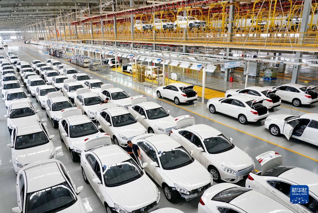 工人在位于河北省黃驊市的北京新能源汽車(chē)股份有限公司黃驊分公司生產(chǎn)車(chē)間工作(2019年7月6日攝)。