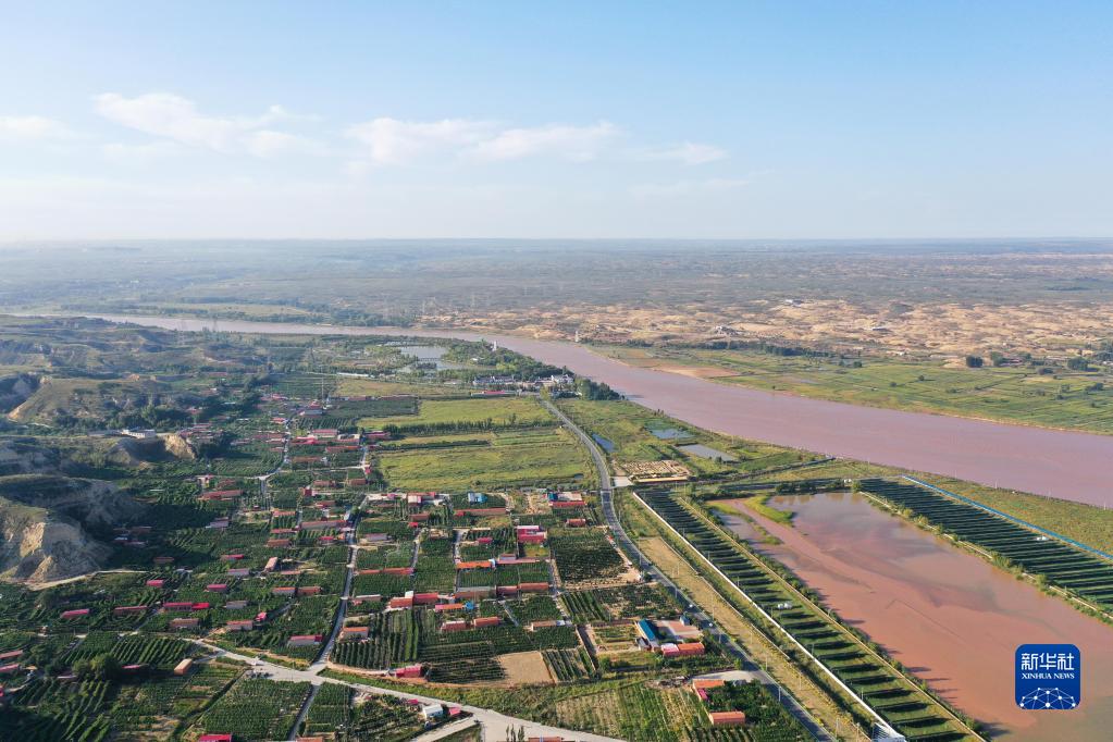 這是9月8日拍攝的黃河托克托縣段景色(無(wú)人機照片)。