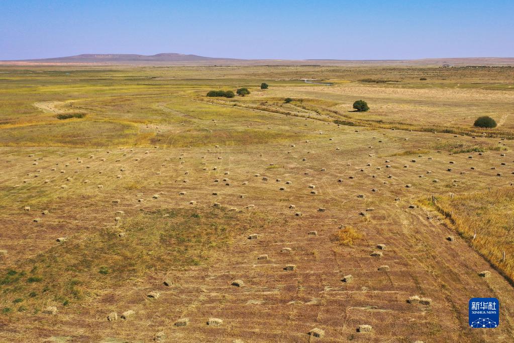 秋日時(shí)節,在內蒙古錫林郭勒盟阿巴嘎旗牧區的草原上,牧民開(kāi)始打草,儲備越冬草料。