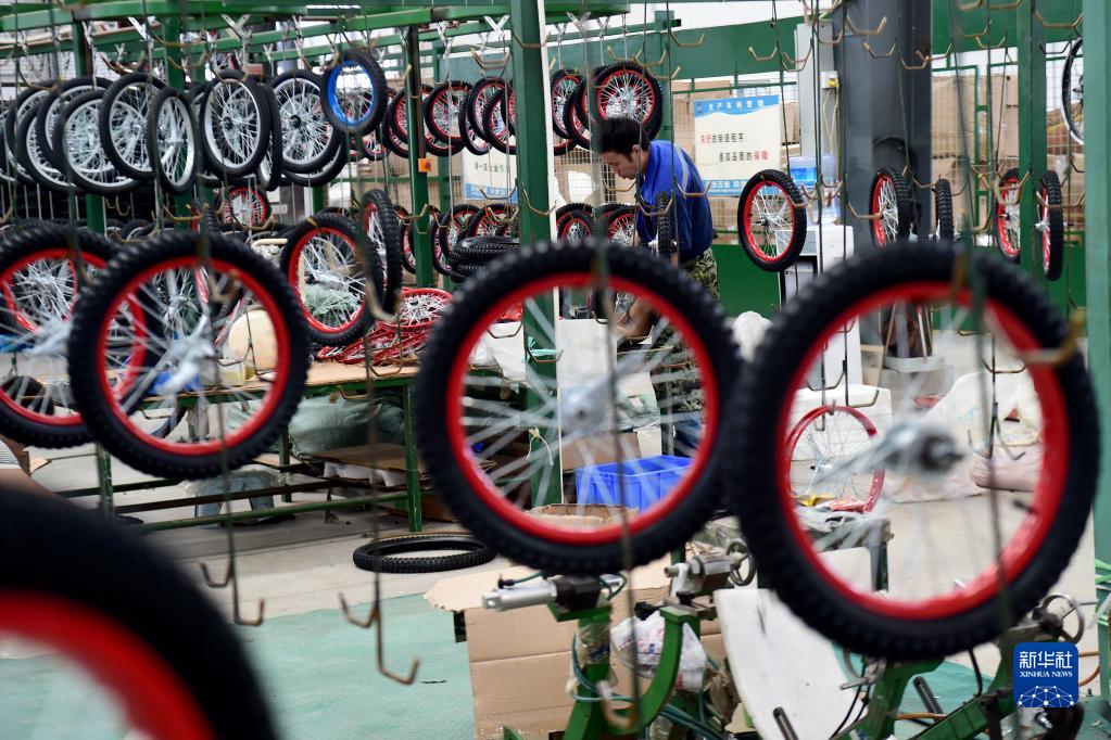9月8日,在五河縣自行車(chē)產(chǎn)業(yè)園一家自行車(chē)生產(chǎn)企業(yè)內,工人在生產(chǎn)線(xiàn)上忙碌。