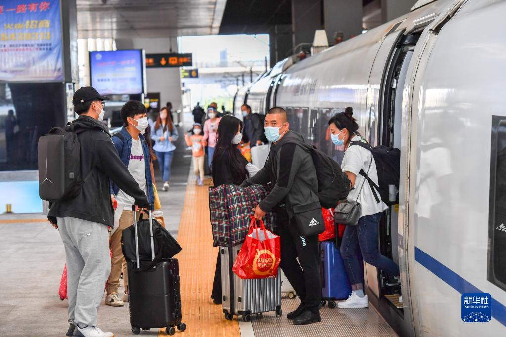 9月9日,在哈爾濱西站站臺,旅客上下列車(chē)。