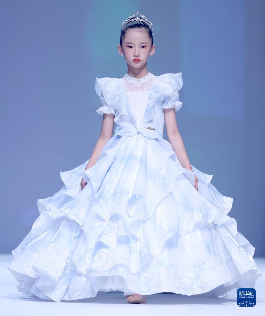 9月9日,小模特在北京中國國際時(shí)裝周(2023春夏系列)舉行的“AMORCODE”童裝發(fā)布會(huì )上展示童裝。
