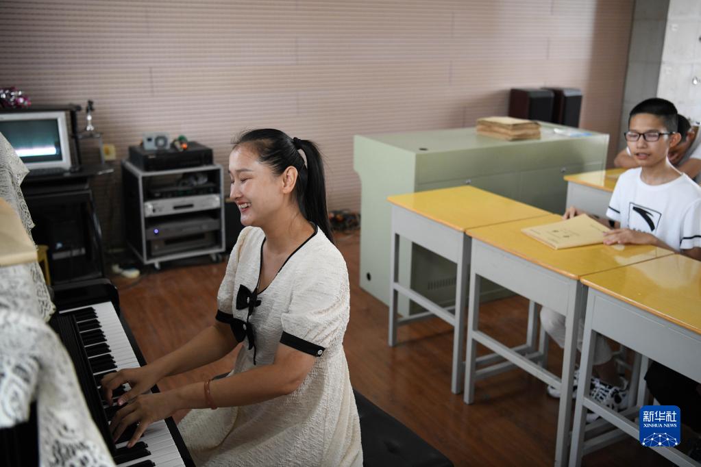 9月7日,在安慶市特殊教育學(xué)校音樂(lè )教室里,張晨給盲生們上音樂(lè )課。